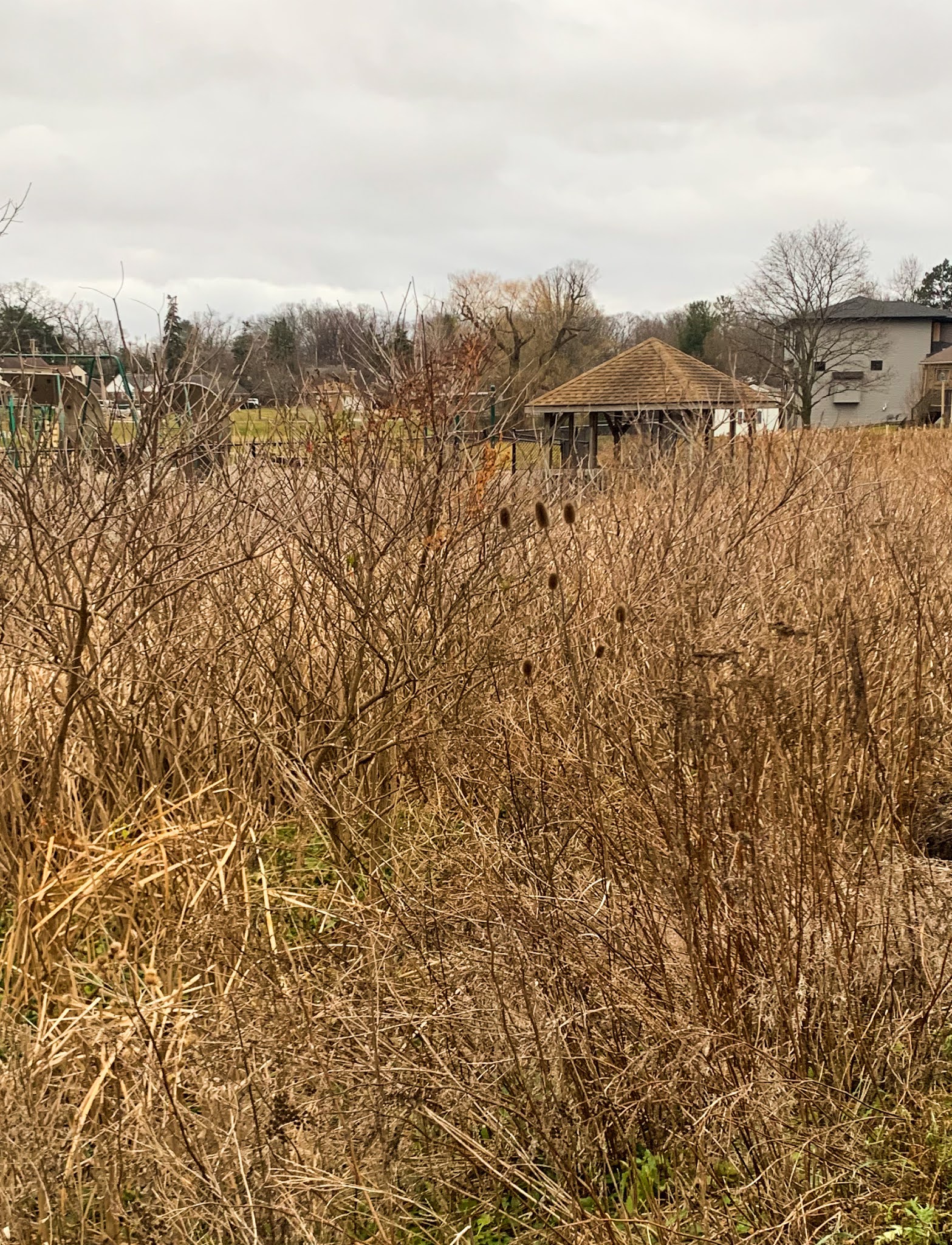 The first Monday morning after Christmas and I’m out for my walk. No surprise there. ‘Tis a little bit tricky for the pedestrian. Yesterday the temperature warmed up a bit and all the snow cover on the roads and sidewalks melted. However, while it did warm up, it didn’t warm up a great deal. Thus, the melt water on the sidewalks did not evaporate. Today the sidewalks, especially the older greyer squares, have a mottled pattern with the darker portions being ice. Slipped a couple of times already. The ice is forcing me to walk on the berms or out in the street where the macadam is sufficiently warm to evaporate off the moisture.